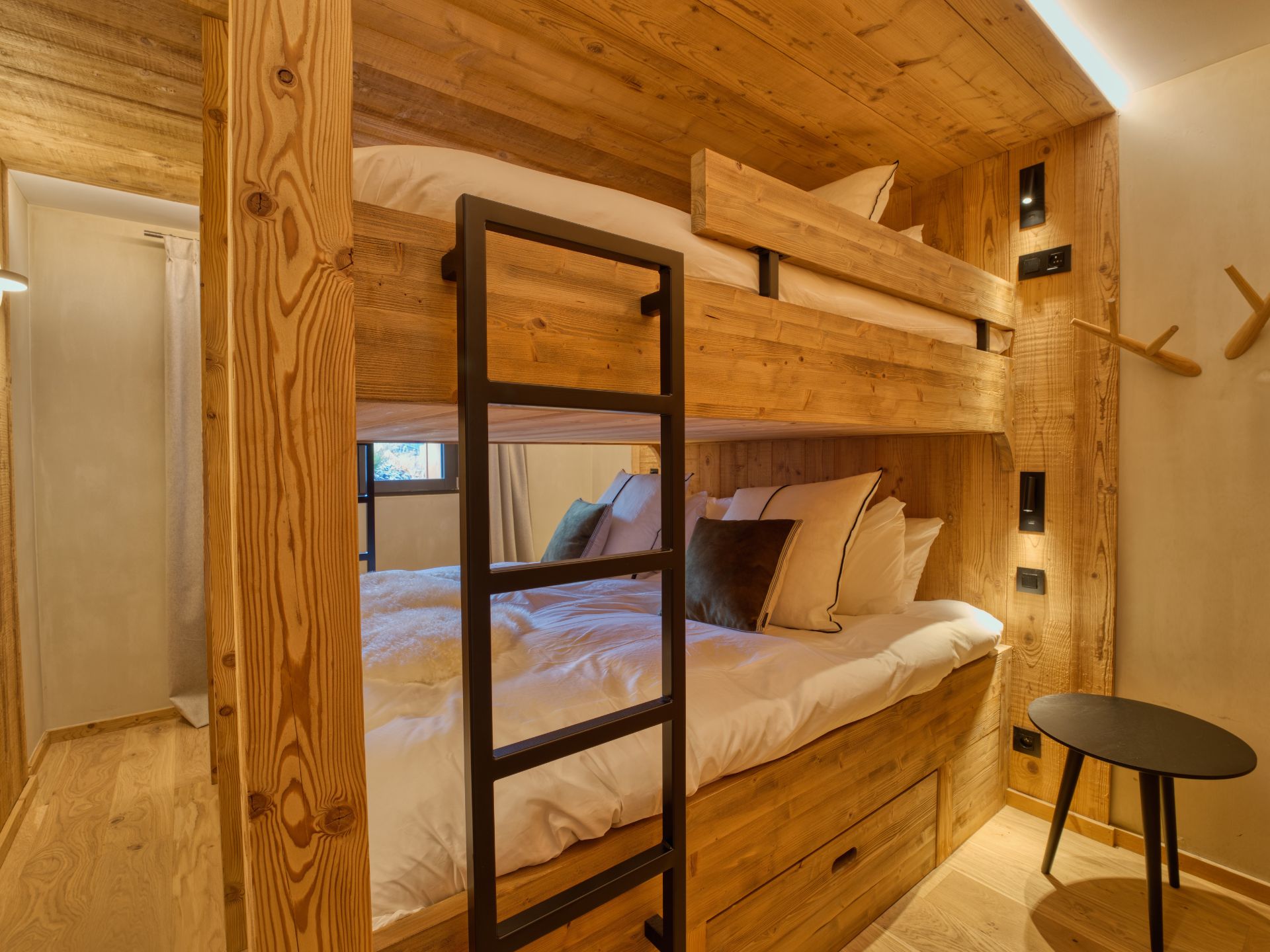 Spread over two levels, the Chalet Quarter can accommodate up to 10 guests in its 4 bedrooms, all featuring en-suite shower rooms. Large windows and floor-to-ceiling bay windows provide exceptional natural light throughout the day and offer remarkable panoramic views of the surrounding mountain peaks.