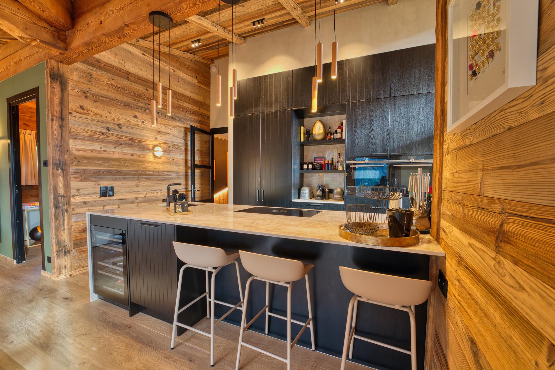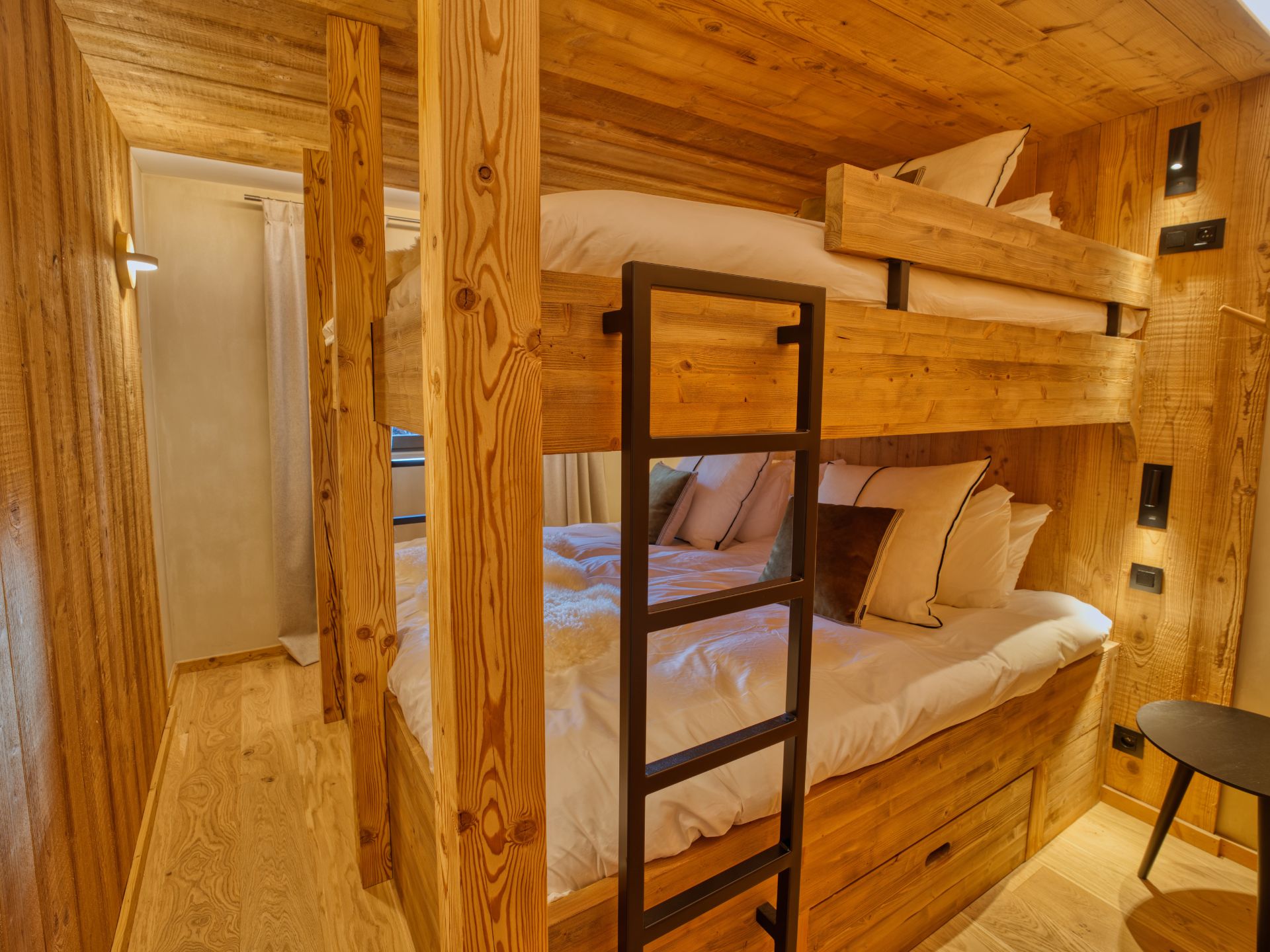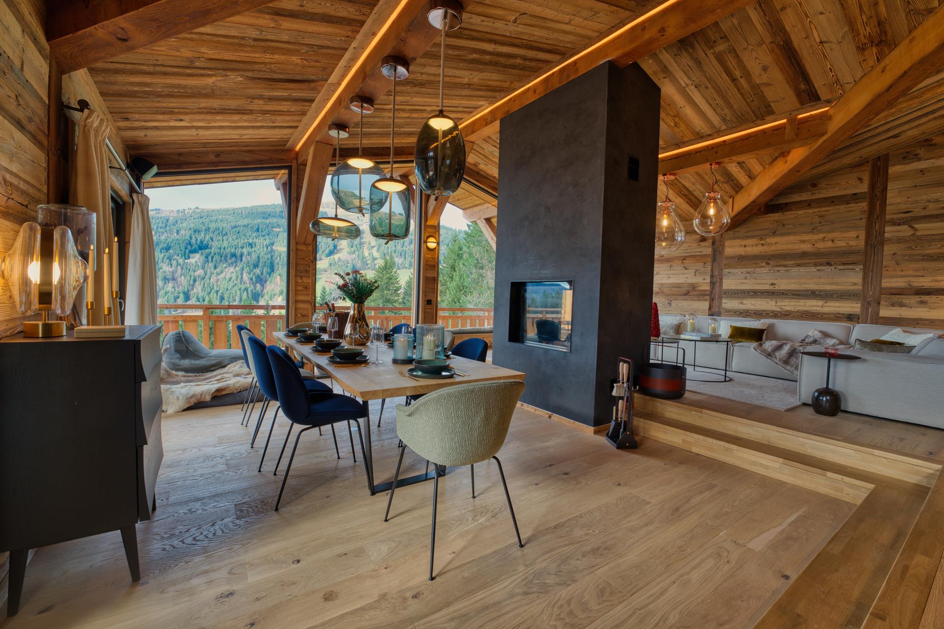 Spread over two levels, the Chalet Quarter can accommodate up to 10 guests in its 4 bedrooms, all featuring en-suite shower rooms. Large windows and floor-to-ceiling bay windows provide exceptional natural light throughout the day and offer remarkable panoramic views of the surrounding mountain peaks.