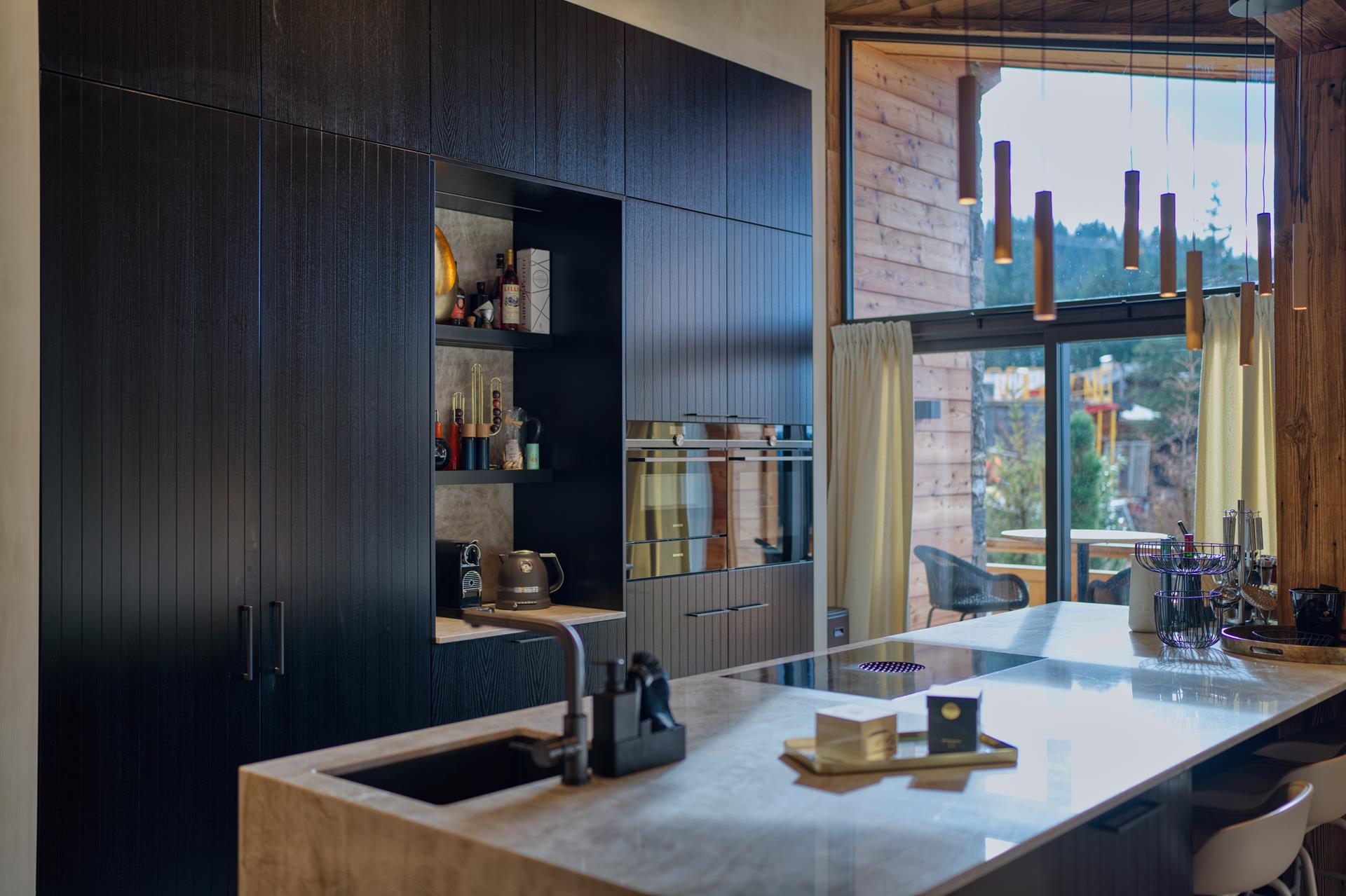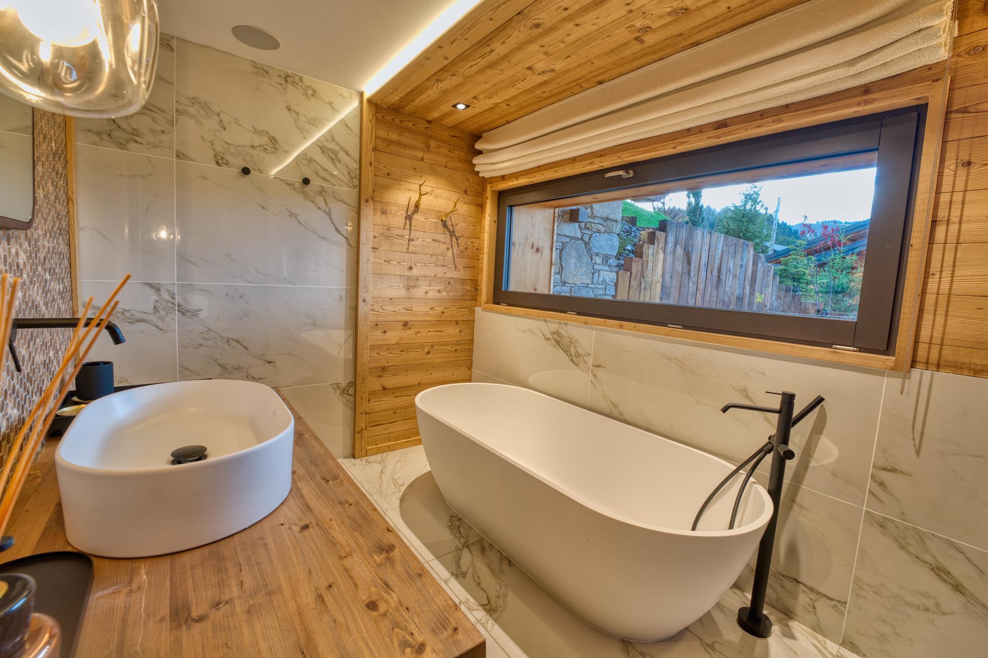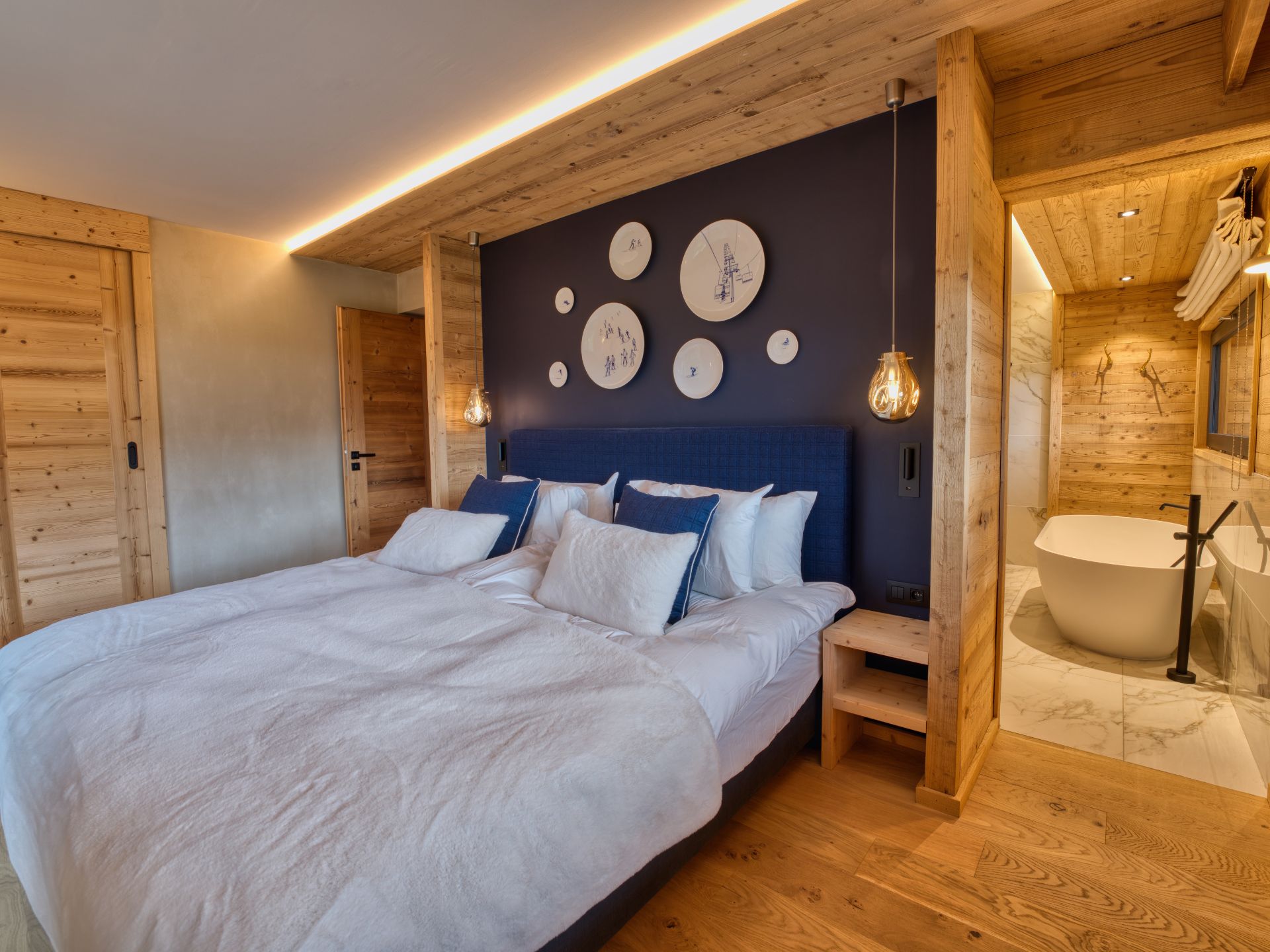 Spread over two levels, the Chalet Quarter can accommodate up to 10 guests in its 4 bedrooms, all featuring en-suite shower rooms. Large windows and floor-to-ceiling bay windows provide exceptional natural light throughout the day and offer remarkable panoramic views of the surrounding mountain peaks.