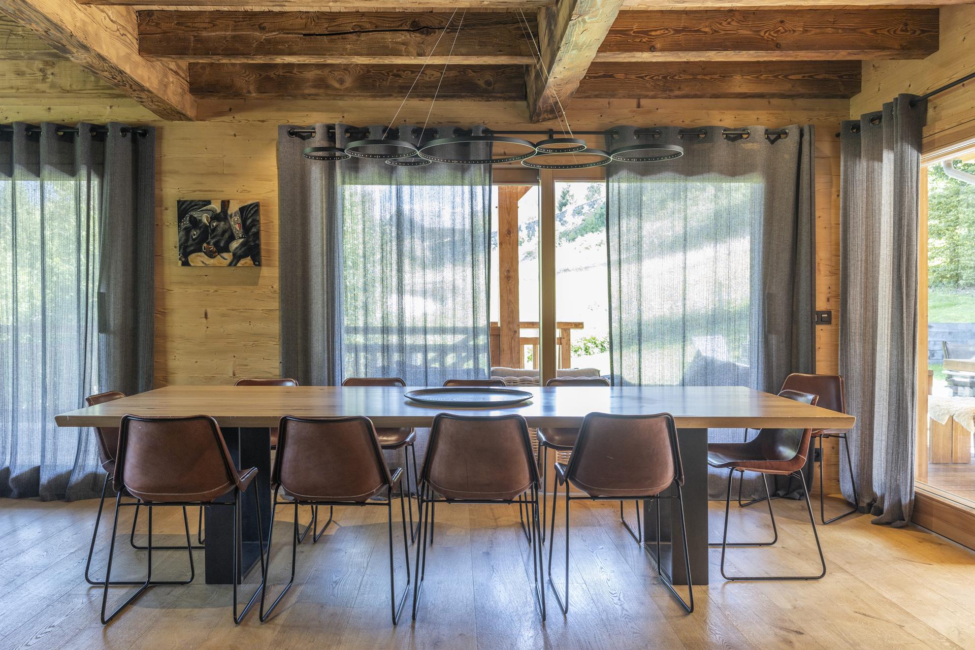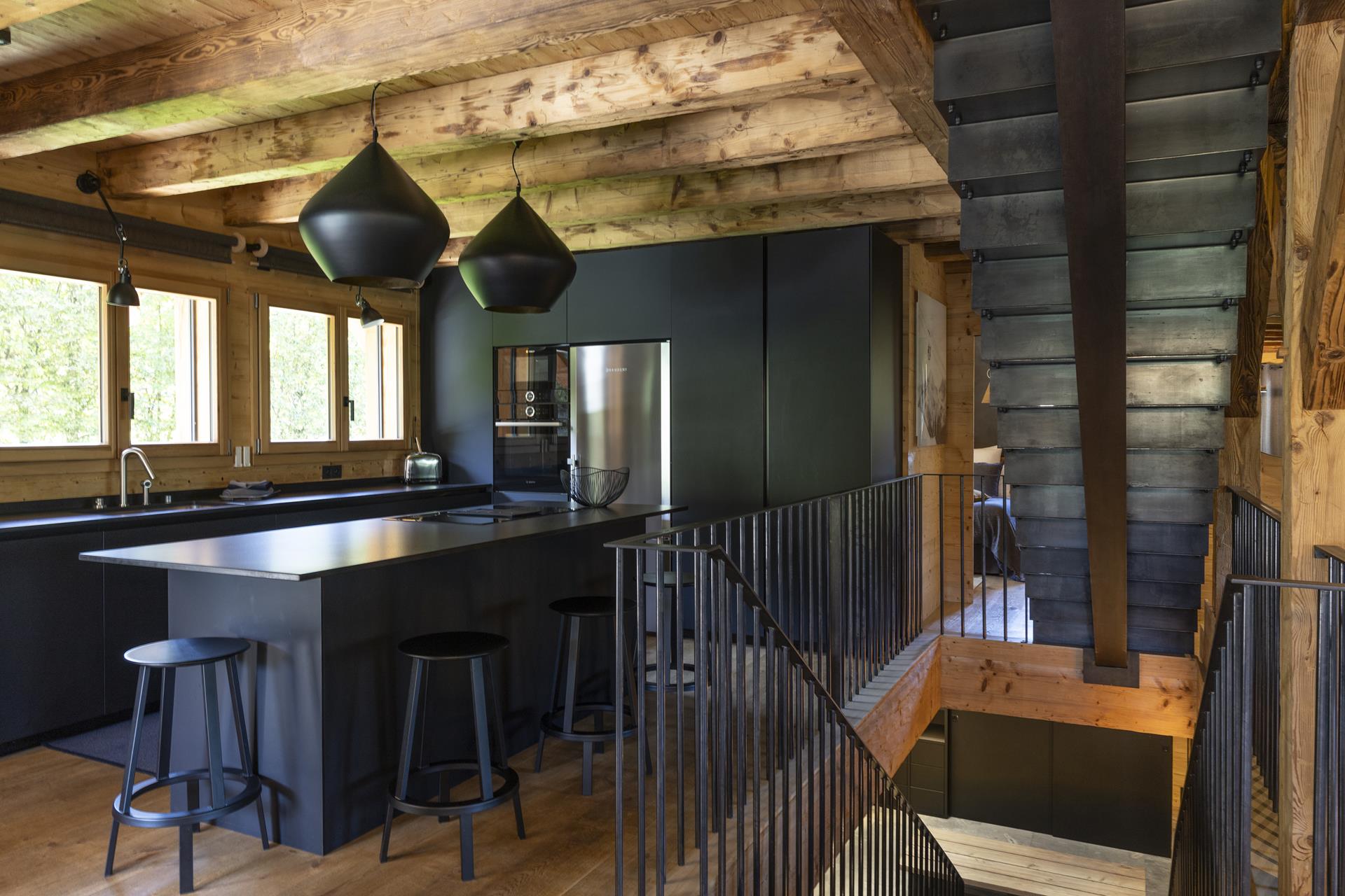 Au rez-de-chaussée, vous trouverez une grande entrée avec local à ski équipé de bancs, rangements et d’un sèche- chaussures. De là, votre attention se portera sur la cave à vin joliment décorée et illuminée dotée d’une large gamme pour accompagner vos mets.