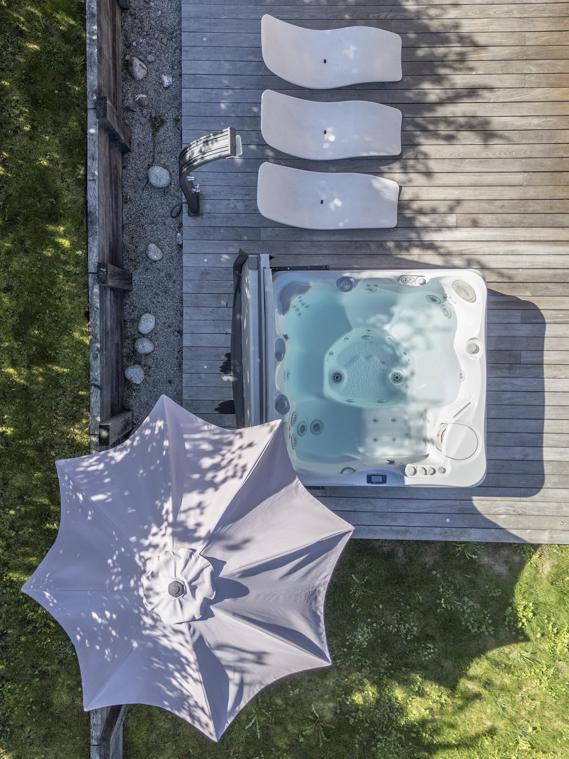 Le chalet Dolmenite bénéficie également d’un grand jardin paysager de 1000 m², d’un abri pour 2 voitures ainsi que de 2 places de parking aériennes.