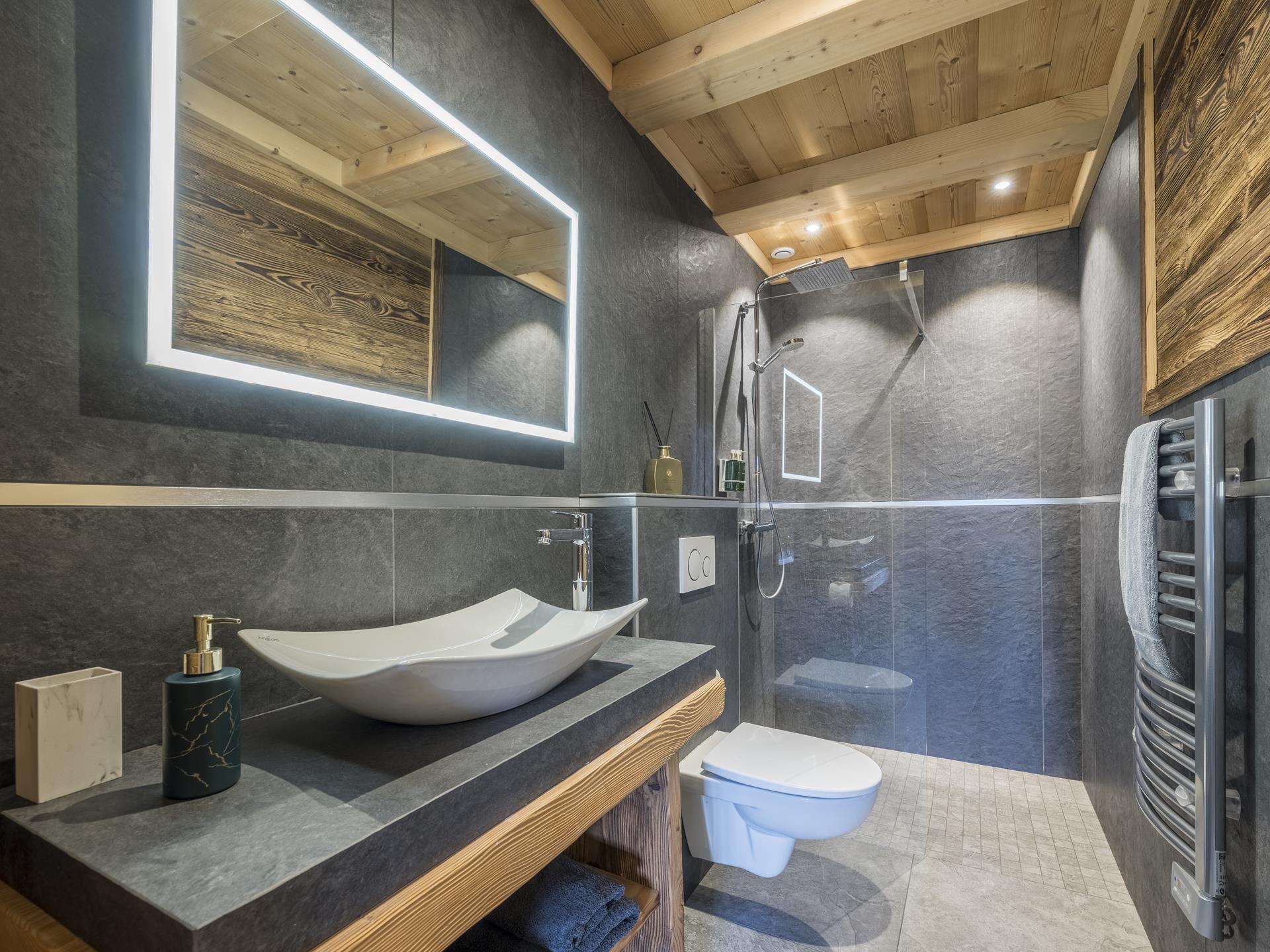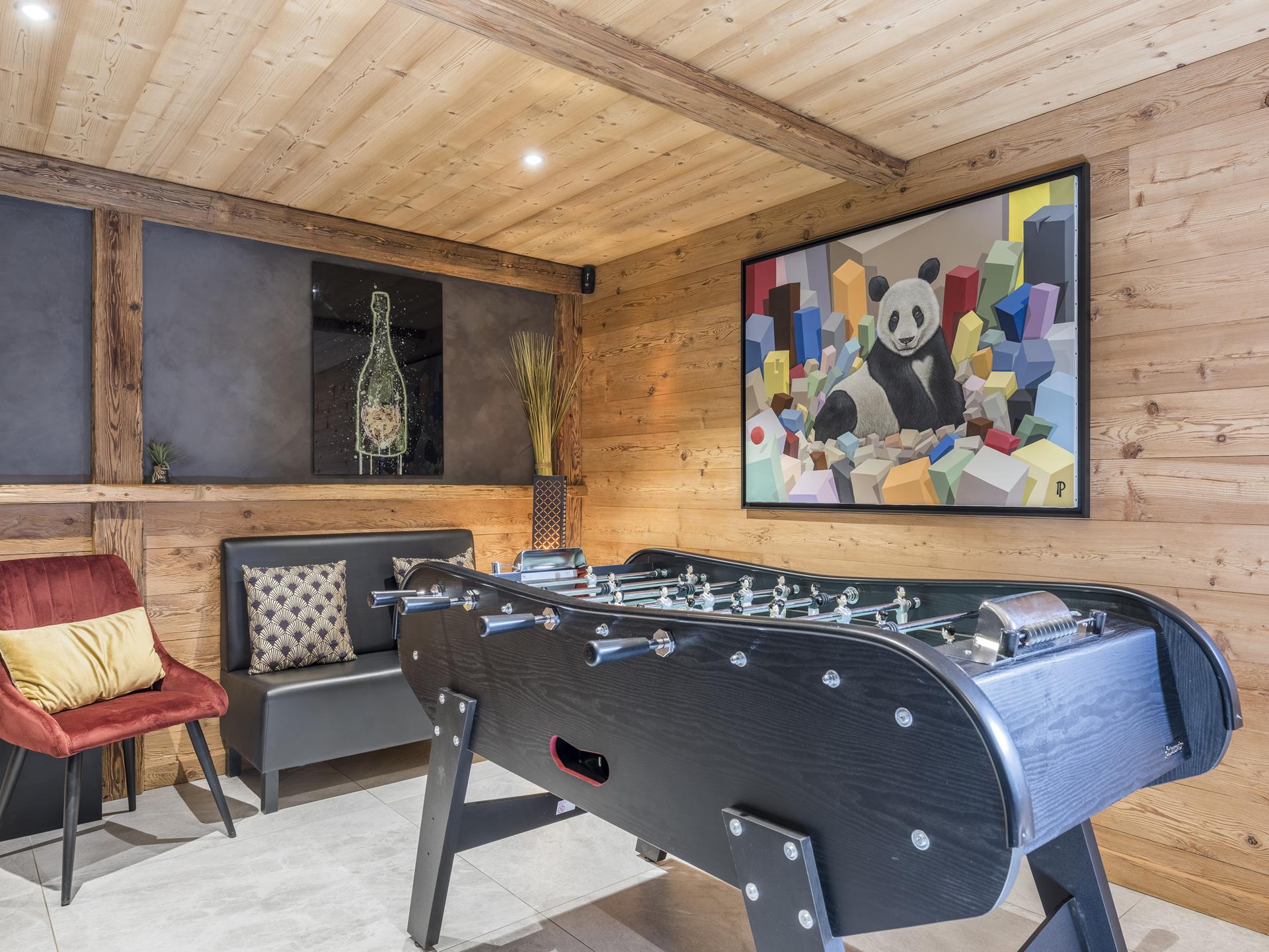 Au rez-de-chaussée du chalet Platines, où se trouve l'entrée, vous trouverez un ski-room pour ranger vos vélos et votre matériel de randonnée. Il y a également 2 chambres, chacune avec une télévision et une salle de douche attenante. Un coin lecture avec balançoire et salon aérien ainsi qu'une buanderie avec lave-linge et sèche-linge complètent ce niveau.